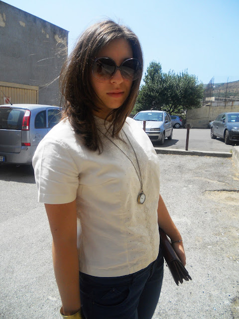 Second post of the day to show you the outfit last night for a concert of an emerging band organized by a friend of mine. I chose a bon ton look with a vintage shirt embroidered with a special collar ( I love it immediately!), plus I chose a little too retrò accessories like the watch with chain and new clutch aged leather.